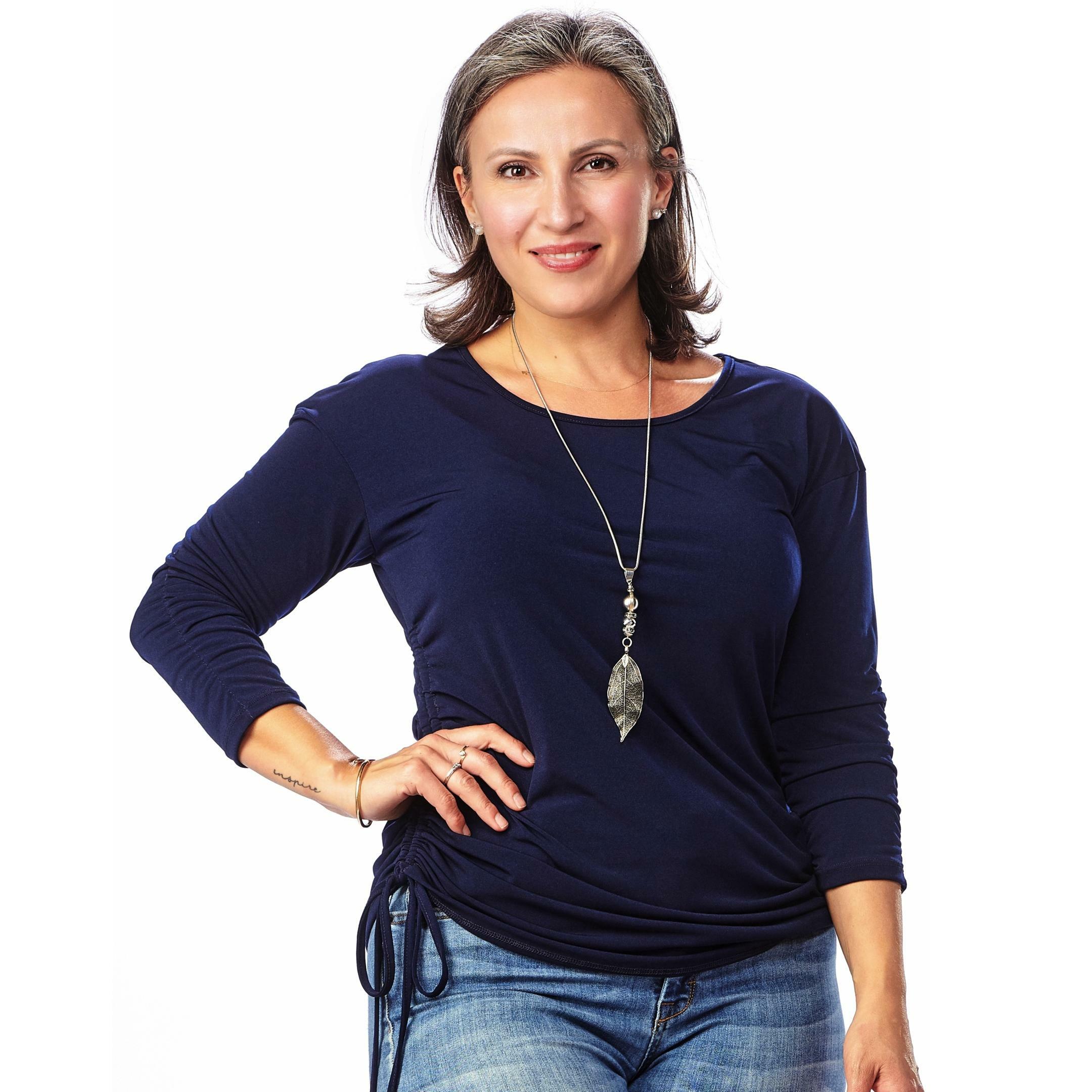 Discover the versatility and comfort of our Adjustable Ruched Top, expertly designed in Canada. Crafted from a premium blend of 96% polyester and 4% spandex, this top offers a luxurious feel with just the right amount of stretch to contour gracefully to your body. The adjustable ruching detail allows you to customize the fit and style, making it perfect for both casual outings and elegant evenings. Elevate your wardrobe with this must-have piece, combining effortless style with ultimate comfort.
