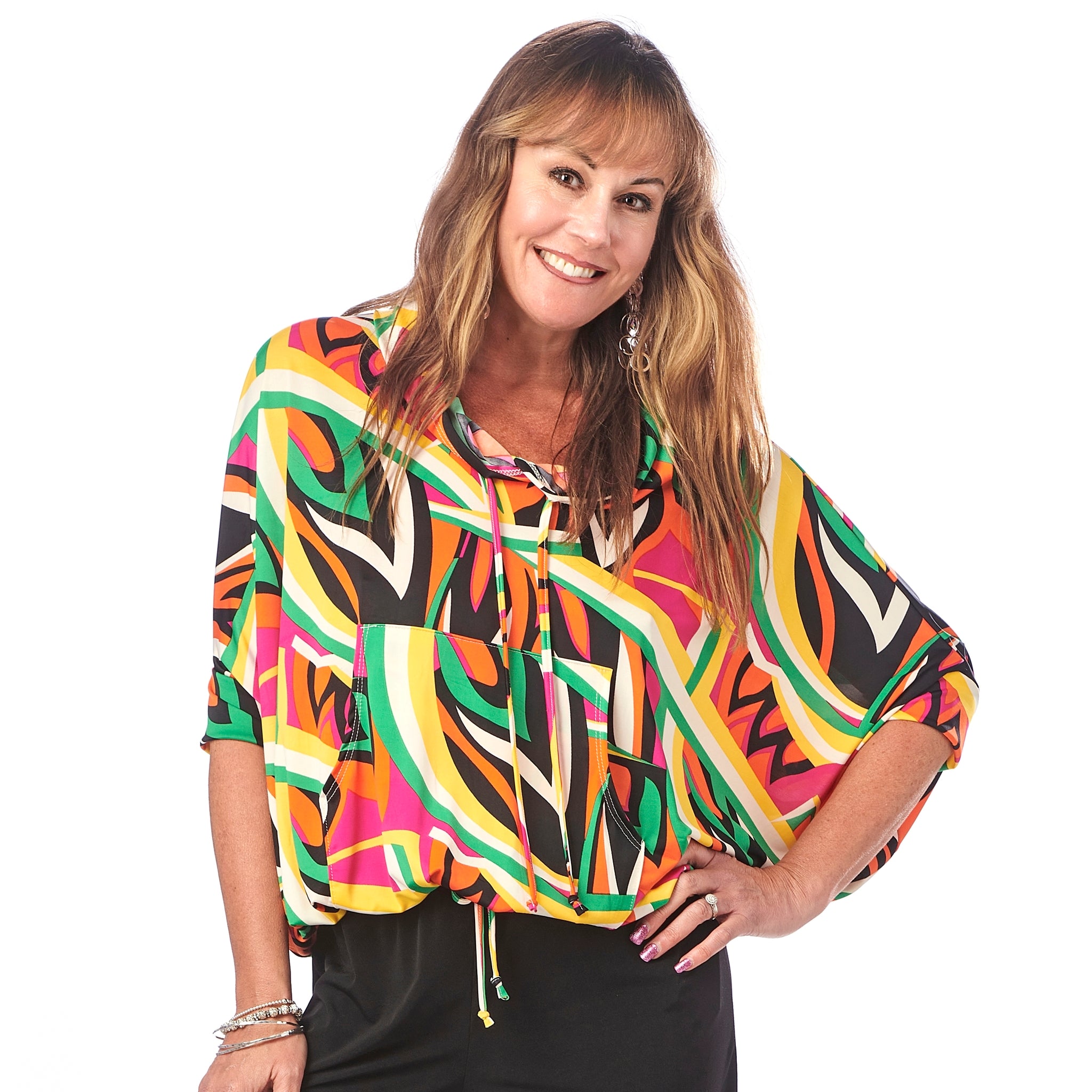 Stay stylish and comfy with our Drawstring Hoody made from a blend of 96% Polyester and 4% Spandex. This versatile top is perfect for any casual outing, whether you're out for the day or lounging at home or on a plane. Pair with our coordinating skirted leggings to complete the look. Crafted in Canada by Rapz Lifestyle Clothing, this hoody offers a perfect mix of quality and comfort, making it a must-have in your wardrobe. Machine washable and perfectly packable.